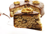 Для крема масло взбейте, добавьте ванильную пудру, коньяк, сахарную пудру и, взбивая, вливайте порциями сгущенное молоко. Для сиропа в кипяченую воду положите сахар, нагрейте до кипения, охладите и влейте коньяк. Бисквит разрежьте вдоль пополам. Нижний слой пропитайте сиропом и нанесите слой крема. Положите на него второй слой бисквита, смочите сиропом, нанесите крем в виде рисунка. Сверху посыпьте измельченными жареными орехами. Разрежьте на пирожные.