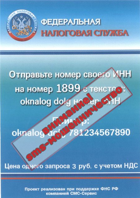 В начале марта в Санкт-Петербурге неустановленные лица распространили листовки с предложением отправить sms-сообщение на короткие номера 1899, 3649 для получения информации о задолженности. В листовке указывается стоимость одного сообщения – 3 рубля. Однако при отправке списывается гораздо большая сумма (около 110 рублей), а ответных сообщений на такой «запрос» не поступает.