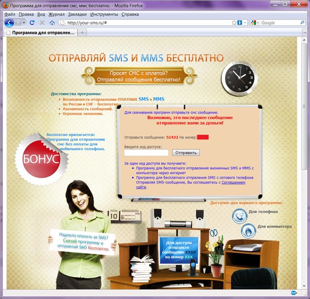 Так же появились новые случаи SMS-мошенничества с помощью вредоносных сайтов, предлагающих сомнительные услуги.
