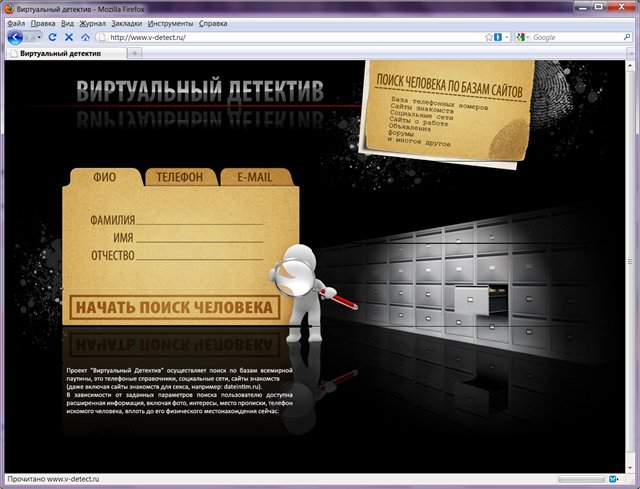 Существуют также сайты, предлагающие услуги по поиску информации о любом человеке в открытых и закрытых базах данных.